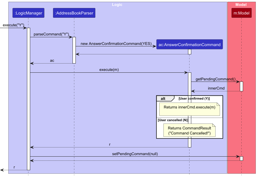 Logicis called upon to execute a command, it is passed to anAddressBookParserobject which in turn creates a parser that matches the command (e.g.,DeleteCommandParser) and uses it to parse the command. - This results in a